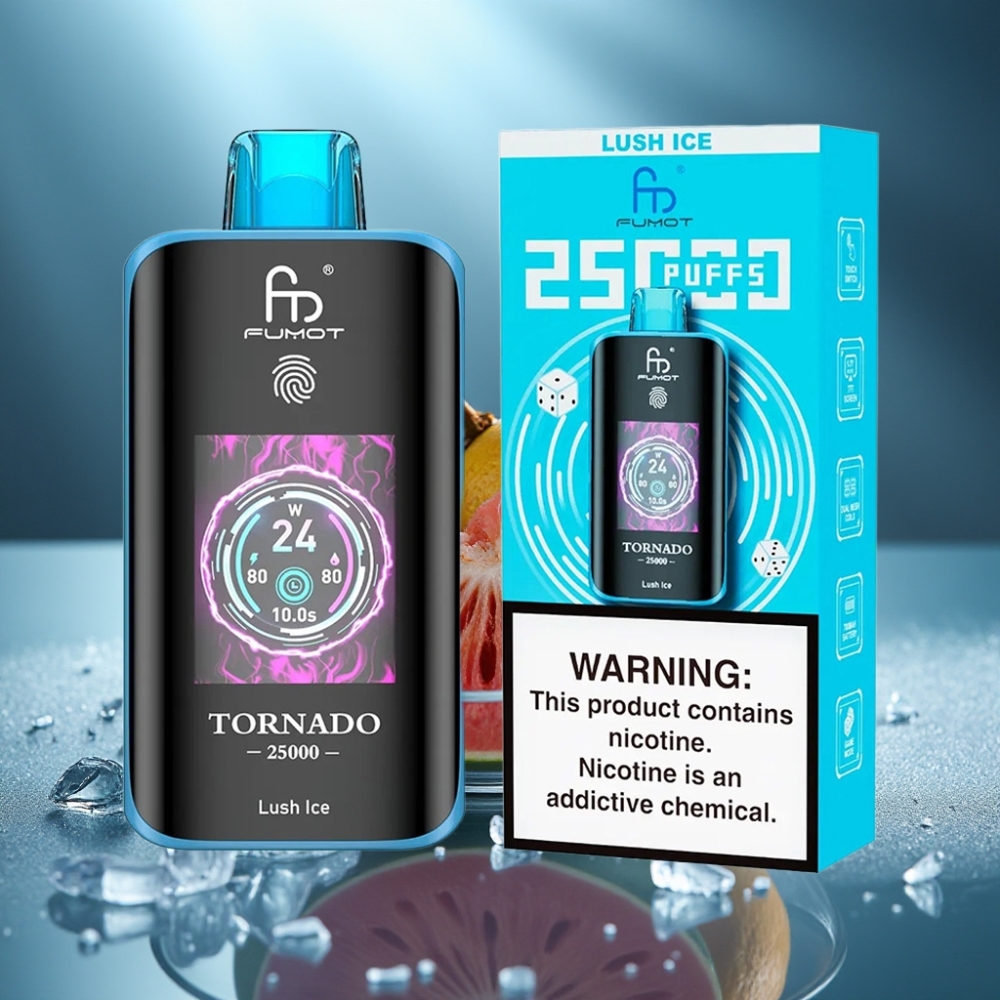 Fumot Tornado 25000 Puffs Диспосабли Вейп Свеж Лед 20ml 5% Никотин HD Screen Type-C
