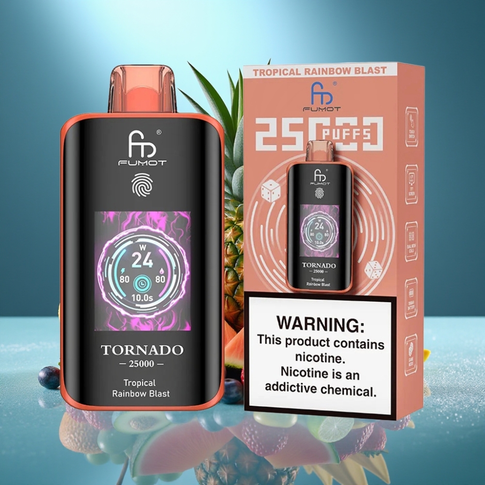 Fumot Tornado 25000 Puffs с HD екран, 700mAh батерия, тропически радужен вкус