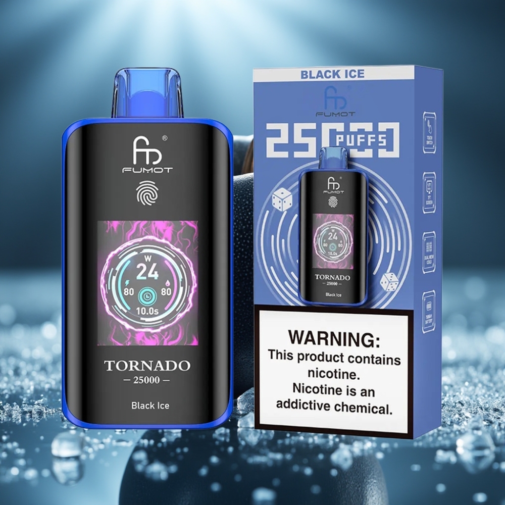 Fumot Tornado 25000 Puffs – HD екран, 700mAh батерия, 20ml e-течност, Black Ice