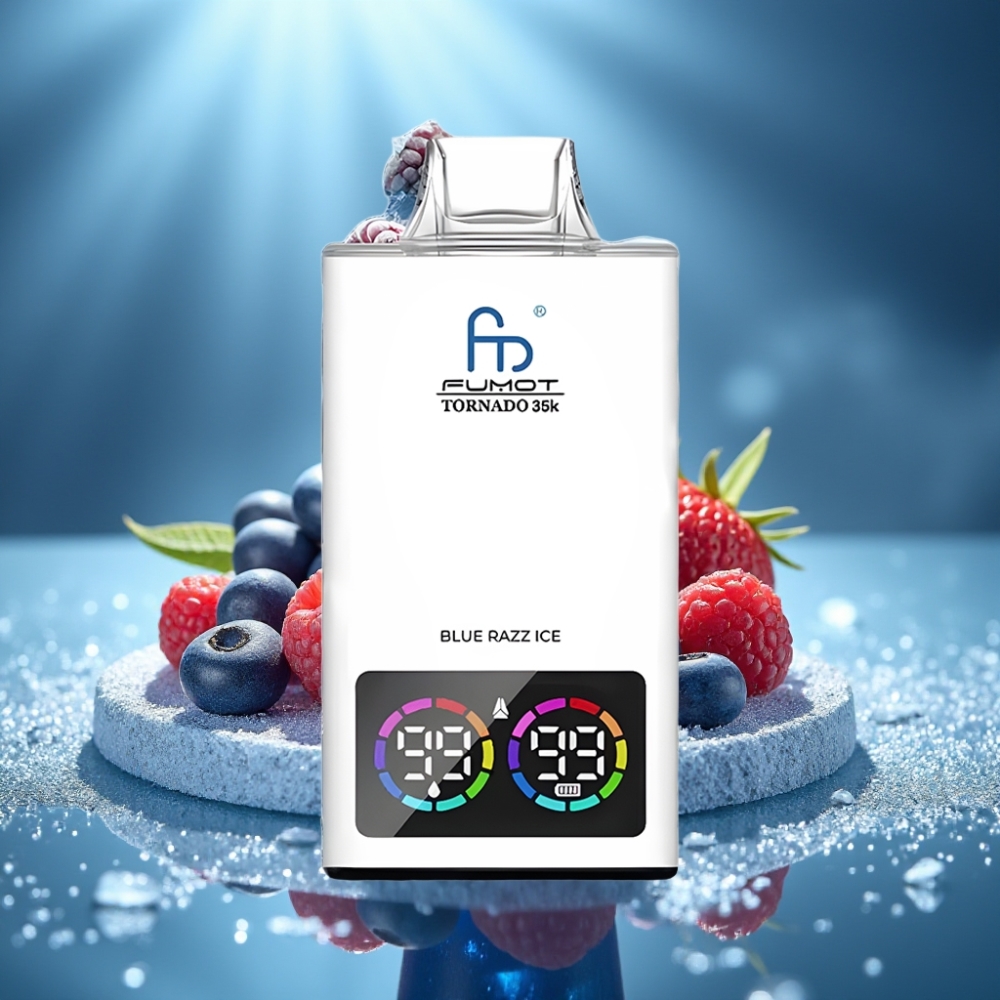 Fumot Tornado 35K Еднократна вейп Blue Razz Ice – Dual Mesh, 15ml, 700MAH